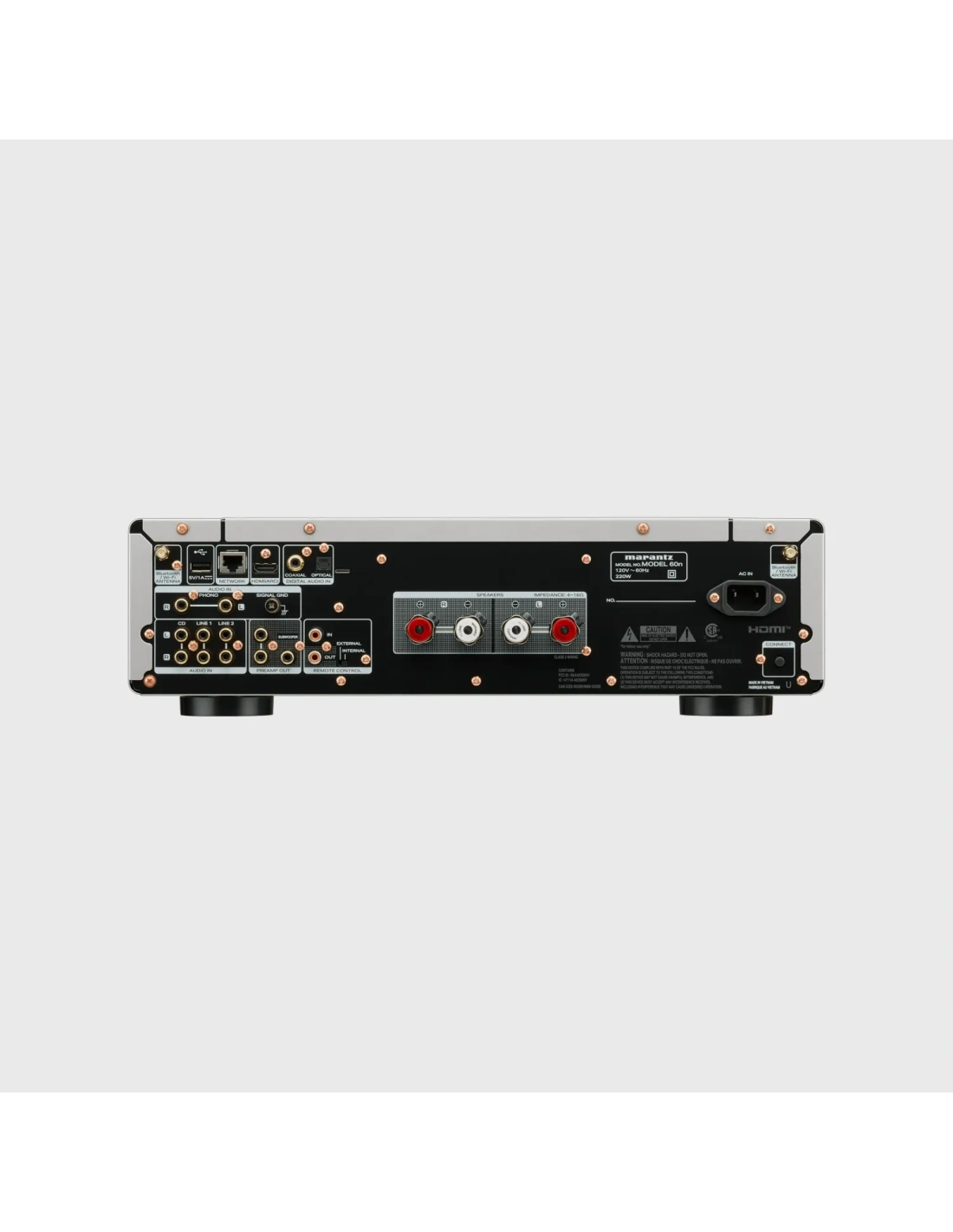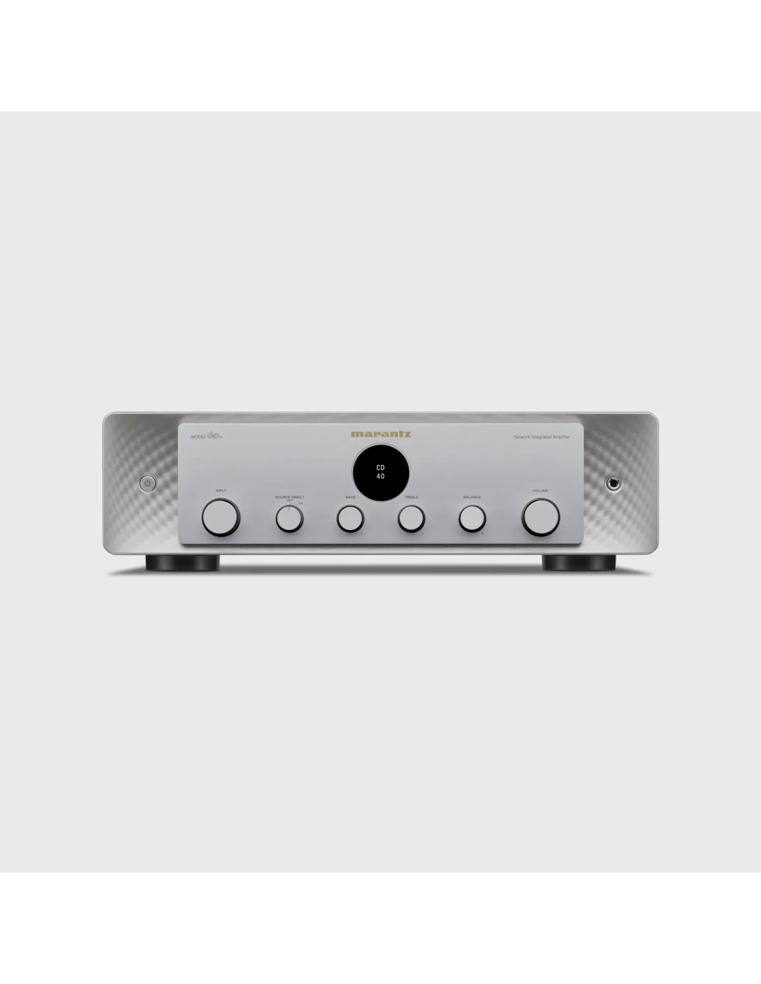 MODEL 60n è un amplificatore di rete integrato progettato per offrire prestazioni hi-fi eccezionali e connettività completa. Esegui lo streaming in alta risoluzione tramite HEOS Integrato, collega il tuo lettore CD o giradischi e completa il tuo sistema hi-fi con gli altoparlanti di tua scelta o con un subwoofer opzionale.