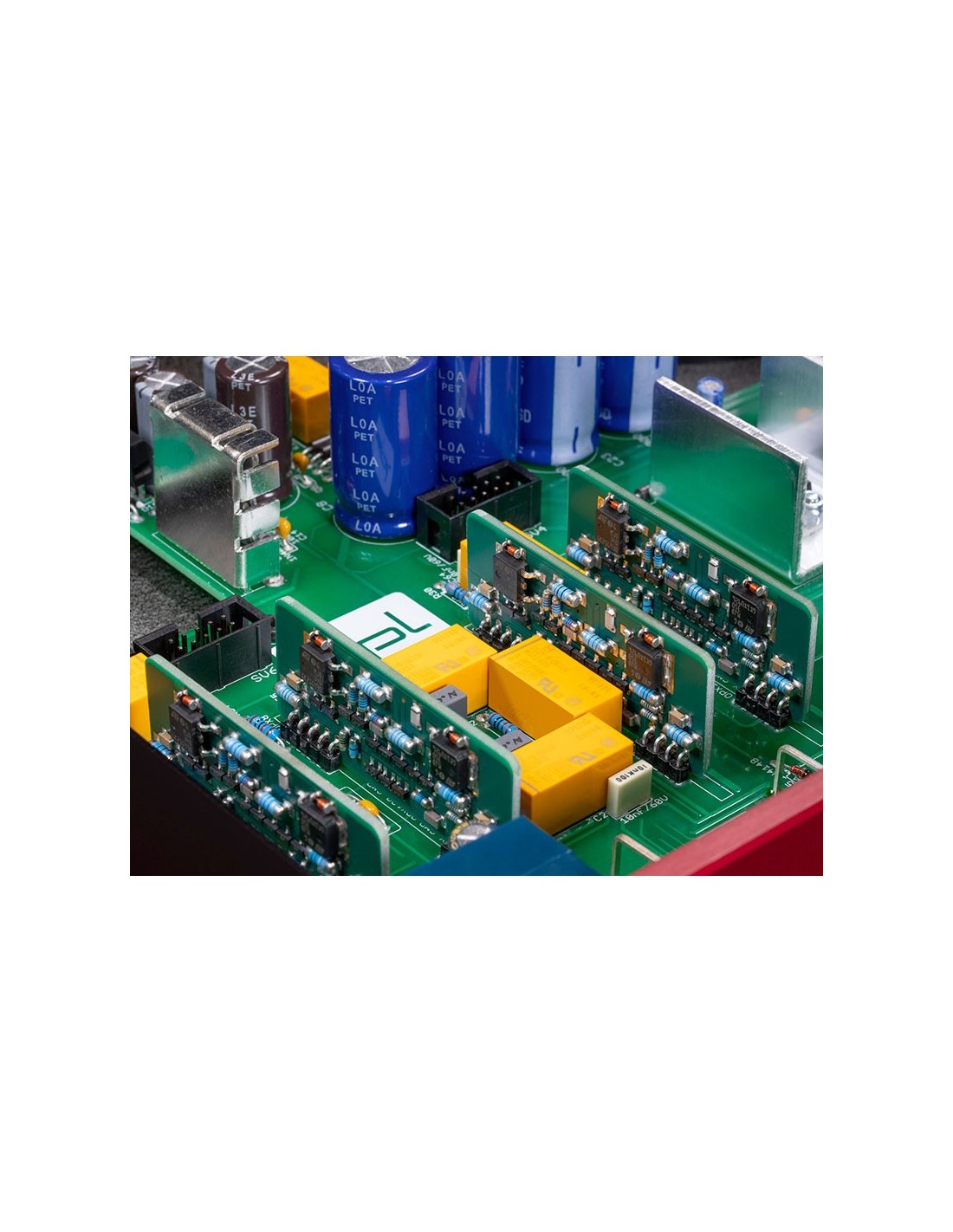 Finale di potenza stereo a transistor bi-polari con tecnologia VOLTAiR. Potenza 2x200W su 8ohm e 2x370W su 4ohm. Circuiti di protezione per DC e per sovraccarico con led di indicazione frontali. Ingressi sia XLR che RCA. Regolazione della sensibilità di ingresso tramite potenziometro posteriore da 0 a -5,5dB. Connettori per diffusori che accettano cavi fino a 4mm e connettori a banana. Trigger 12V. Trasformatore toroidale schermato. Tecnologia VOLTAiR +/-60V con amplificatori operazionali a discreti proprietari. Dimensioni (LxAxP): 278x108x345mm. Peso: 14,6Kg. Placca decorativa frontale magnetica intercambiabile.