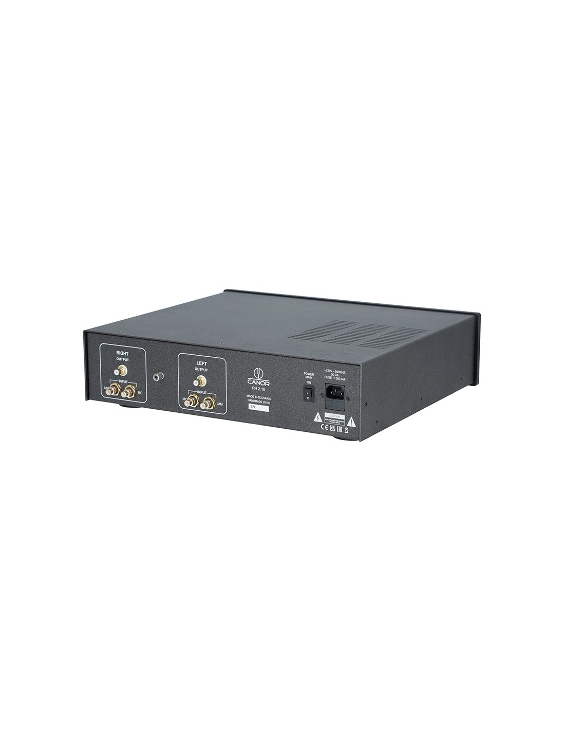 Stadio Phono MM/MC a valvole. Circuitazione Zero feedback. L'ingresso MC ha lo step-up interno con trasformatore Lundahl. Impedenza e capacità variabili tramite manopola frontale. La circuitazione elettronica è minima rispetto a quella passiva. Lo stadio di alimentazione impiega un trasformatore custom dove primario e secondario sono separati galvanicamente da un foglio di rame e il tutto incapsulato all'interno di un contenitore riempito con materiale composito anti-vibrazione. Sul percorso del segnale sono impiegati solo i migliori condensatori in polipropilene. Design dei circuiti stampati proprietario CMT technology. Valvole impiegate: 2 x 12AX7, 2 x 12AT7WC. 2 ingressi RCA (1 MM e 1 MC). 1 Uscita RCA. Chassis in solido alluminio per eliminare le vibrazioni. Display grafico a matrice di punti. Dimensioni (LxAxP): 435x120x405mm. Peso: 14Kg