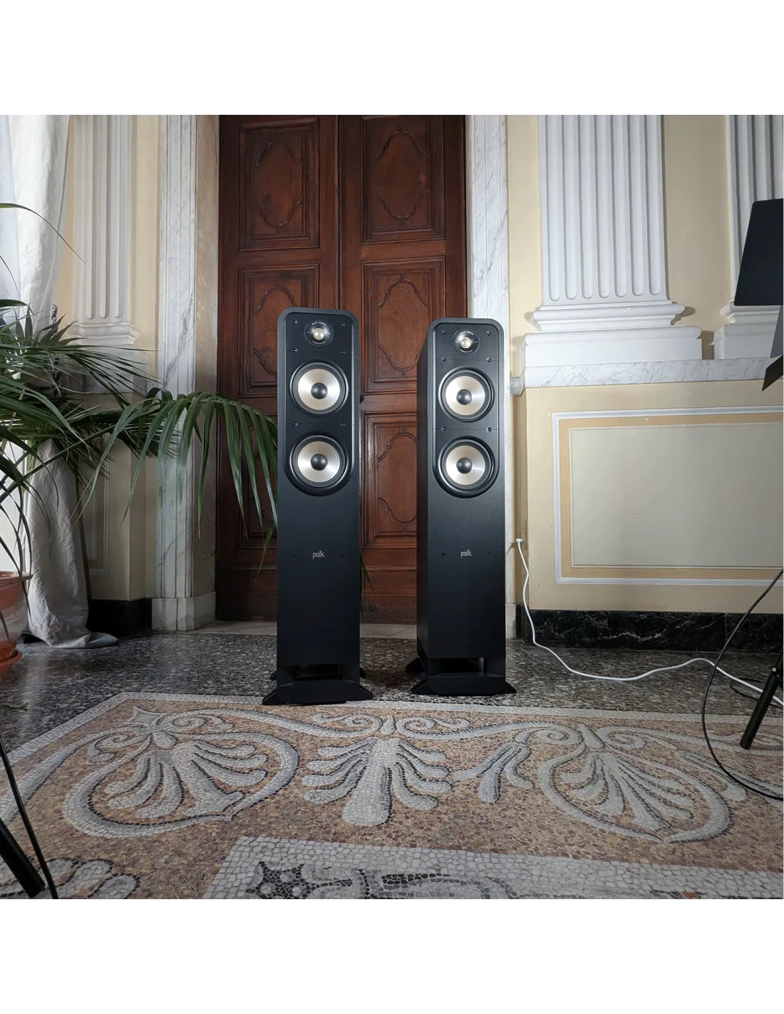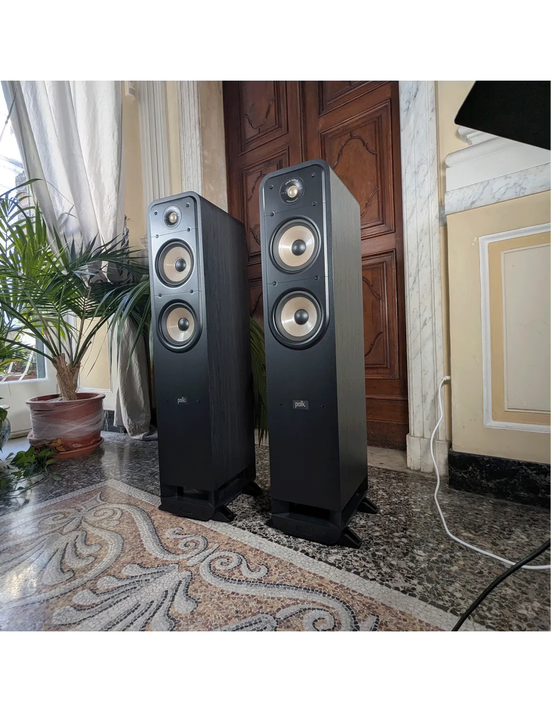 Diffusori da pavimento Polk Audio S55 EL Signature usati in sala ascolto, con normali segni estetici da utilizzo ma perfettamente funzionanti e senza compromissioni sonore. I Polk S55 EL sono diffusori passivi 2,5 vie bass-reflex progettati per offrire un suono pieno, dinamico e dettagliato, con bassi profondi, medi corposi e alti chiari. Ideali sia per impianti stereo hi-fi che per sistemi home cinema multicanale. Le condizioni sono buone, con segni e sbavature visibili su un diffusore (tra cui una strisciata sul frontale e qualche intacco agli angoli della finitura), senza alcun impatto sull’ascolto.
