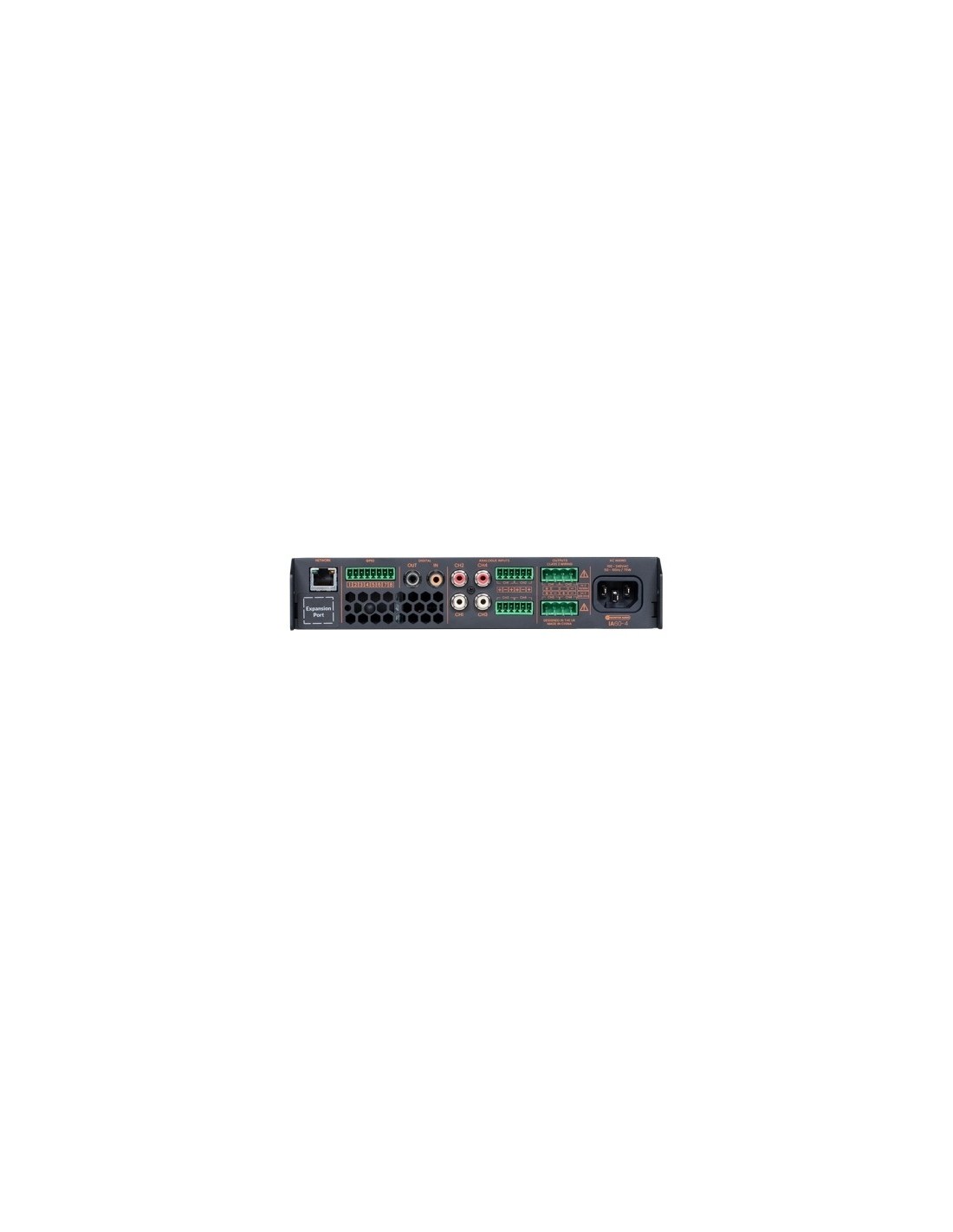 Amplificatore Custom Installation serie G2 a 4 canali basato su moduli in Classe D ultra performanti, con chassis compatto in standard rack 1U a larghezza dimezzata - tecnologia Power Sharing capace di condividere dinamicamente la potenza tra i canali in uscita - potenza 60 Watt per canale (4 canali) su 4/8 Ohm e fino a 250 Watt per singolo canale con Power Share, configurabile in modalità a ponte (potenza 2x125 Watt) per pilotare direttamente linee di diffusione a 70/100 Volt - DSP (Digital Signal Processor) a matrice completamente personalizzabile mediante interfaccia avanzata di setup e controllo TCP/IP multipiattaforma, ottimizzata per tablet e smartphone con risposta in tempo reale, grazie alla quale è possibile configurare un set evoluto di parametri e funzioni, tra cui: modalità di avvio/arresto con o senza delay; instradamento dei segnali audio tra i canali e gestione zone di controllo; modalità mono/stereo, livelli di trim, guadagno, volume, compressione, limiter, delay, equalizzazione parametrica, filtri crossover, FIR, polarità; caricamento e salvataggio preset - circuiti di protezione da cortocircuiti, sovraccarico, sottotensioni e surriscaldamento - alimentazione SMPS di elevata qualità con tecnologia PFC (Power Factor Correction) e tensioni d'esercizio universali (100 V - 240 V / 50 Hz - 60 Hz) - interfacce di rete ethernet RJ45 e Wi-Fi - morsettiere Euroblock per segnali bilanciati su ciascun canale con supporto livelli -10 dBV / +4 dBU / + 14 dBU / microfono - 4x ingressi linea analogici sbilanciati RCA - 1x ingresso e 1x uscita digitali coassiali elettrici RCA - interfaccia Euroblock GPIO (General Purpose In/Out) configurabile per la gestione da remoto del volume, dello standby, del Mute e delle funzioni Trigger - terminali per diffusori Phoenix con modalità Lo-Z a bassa impedenza (4/8 Ohm) e Hi-Z ad alta impedenza (70/110 V) - supporto completo e driver dedicati per integrazione con sistemi di domotica Crestron, Crestron Home, Control4, RTI - risposta in frequenza 20 Hz - 20 kHz (8 Ohm / -3 dB) - distorsione armonica totale <0,05% (THD + N, 8 Ohm / 20 Hz - 20 kHz / -3 dB) - rapporto segnale/rumore >106 dB (SNR, A-weighted / 20 Hz - 20 kHz, 8 Ohm) - staffe per il montaggio a rack (singola unità a chassis compatto half rack con staffa standard su un lato e staffa di estensione lunga metà rack sull'altro, con facoltà di montare due unità half rack affiancate con piastrina di congiunzione e staffe standard sui lati) e per l'installazione a parete opzionali, acquistabili separatamente - dimensioni chassis: (L x A x P) 220 x 44 x 325 mm