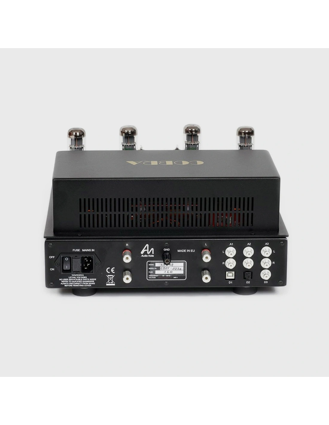 Per mantenere fede alla purezza del segnale e alla semplicità circuitale, l'Audio Note Cobra non include uno stadio phono integrato, rendendo necessario l'acquisto di un preamplificatore dedicato per chi desidera utilizzare un giradischi. Non è presente un'uscita cuffie, né uscite pre-out per il collegamento di subwoofer o finali di potenza aggiuntivi. Sul fronte digitale, il DAC interno è ottimizzato per la risoluzione Red Book (16-bit/44.1kHz), pertanto non supporta nativamente file DSD o formati MQA. Infine, non sono integrate connessioni wireless come Bluetooth o Wi-Fi, una scelta deliberata per evitare interferenze a radiofrequenza all'interno dello stadio analogico.
