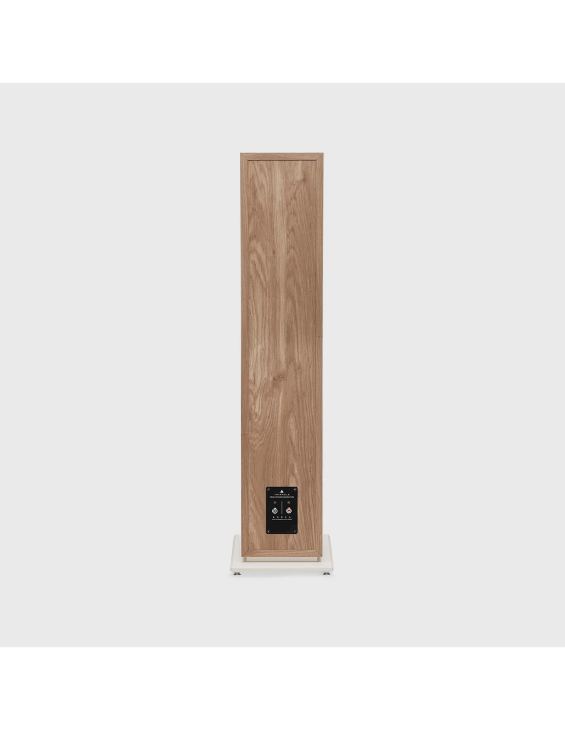 Il tweeter da 25 mm con tecnologia EFS (Efficient Flow System) utilizza una cupola in seta abbinata a un rifasatore centrale che riduce drasticamente la direttività delle alte frequenze. Il midrange è il vero protagonista: un cono da 16 cm in carta di pura cellulosa non trattata, una scelta tecnica che evita ogni alterazione timbrica nelle frequenze medie. Infine, la sezione bassa è affidata a due woofer in fibra di vetro da 16 cm, progettati per garantire rigidità e velocità, sostenuti da un condotto reflex generoso posto sul frontale.