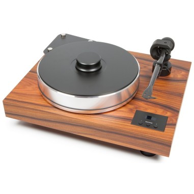 Giradischi "no compromise" stile retrò. Base antirisonante in composito e piatto con struttura a sandwich in acciaio/vinile. Trazione a cinghia, motore silenziosissimo. Speed Box SE integrato per il cambio di velocità. Sistema di sospensione magnetica del sub-chassis in CORIAN che isola piatto e braccio, testina Ortofon Cadenza Red pre-montata. Piedini magnetici ad altezza regolabile. Peso 25 Kg. Braccio Pro-Ject 10cc EVO in dotazione.
