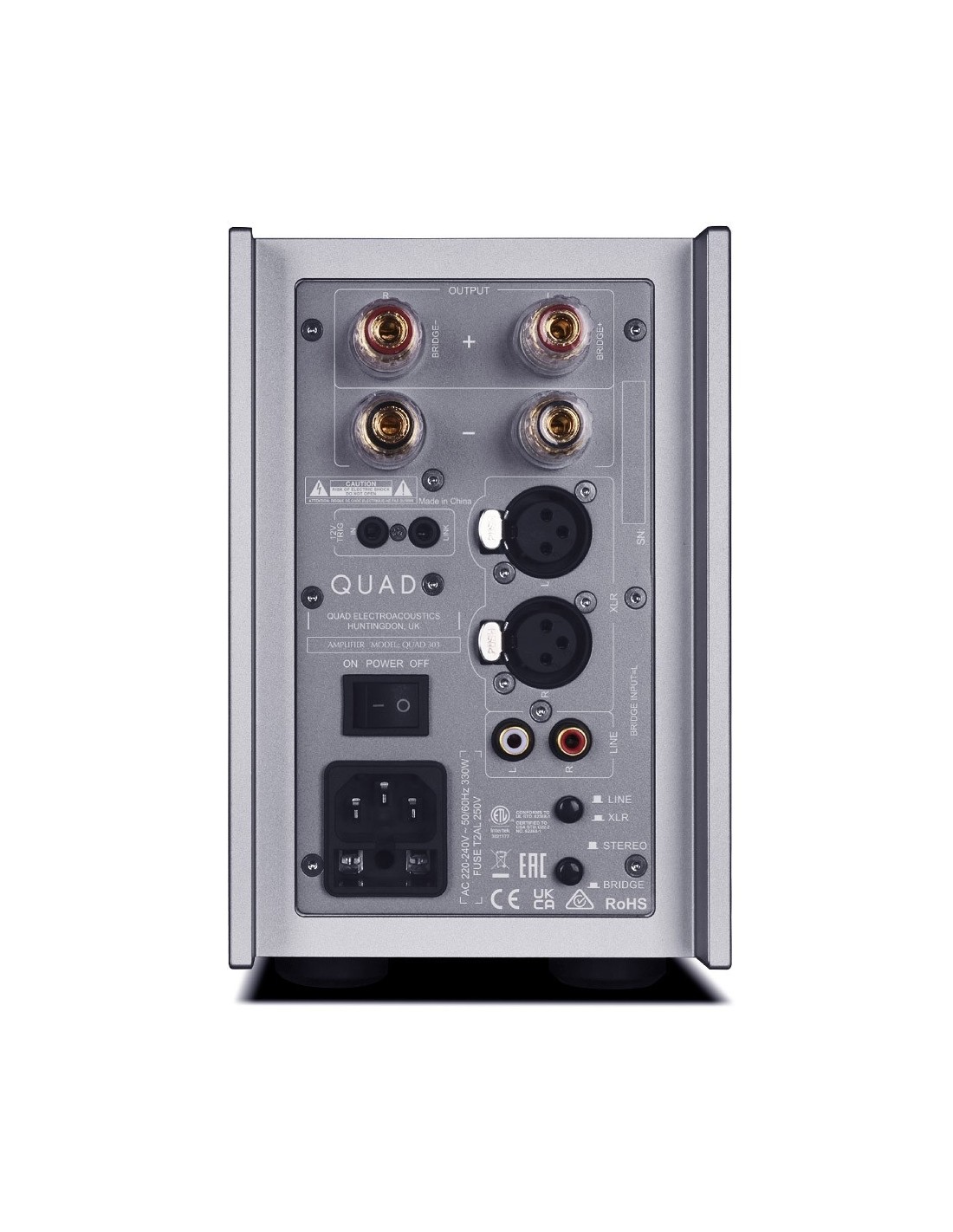 Amplificatore finale di potenza stereofonico a stato solido in Classe AB, rivisitazione fedele e tecnologicamente aggiornata dell'inconfondibile e leggendario QUAD 303 commercializzato nel 1967, partner ideale del preamplificatore QUAD 33 - chassis compatto dall'accattivante estetica Industrial Design, aderente all'aspetto del modello originale, impreziosito da un moderno pulsante di Standby retro illuminato con luce LED arancione - doti di pilotaggio eccellenti e capacità di gestire carichi molto complicati - potenza 50 Watt per canale su 8 Ohm e 70 Watt per canale su 4 Ohm con corrente d'uscita fino a 10 Ampere - facoltà di configurazione a ponte monofonica con potenza di 140 Watt su 8 Ohm e 170 Watt su 4 Ohm - implementazione del rinomato circuito proprietario QUAD Symmetrical Triples, con stadio d'uscita perfettamente simmetrico, il cui controllo costante ed effettivo della corrente in uscita e della tensione consente ai transistor di operare in modo completamente protetto e sempre entro i propri parametri raccomandati, garantendo prestazioni e affidabilità assolute in qualunque condizione, con livelli di distorsione centinaia di volte inferiori rispetto a quelli intrinsecamente presenti a partire dal segnale sorgente - stadio d'uscita avanzato caratterizzato da linearità estrema ed eccezionale stabilità termica, con prestazioni rimarchevoli in termini di dinamica, controllo e ricchezza timbrica - stadio di alimentazione lineare con trasformatore toroidale Custom Made a bassissimo rumore da 200 VA - circuito di protezione da sovraccarichi e cortocircuiti - chassis rigidissimo anti vibrazioni, frontale sagomato con massicci dissipatori laterali in alluminio anodizzato lavorato dal pieno con macchine a controllo numerico CNC - ingressi stereofonici: 1x L/R bilanciato XLR, 1x L/R sbilanciato RCA - 2x porte trigger 12 V (In / Link) - risposta in frequenza 20 Hz - 20 kHz (+/-0,2 dB) - distorsione armonica totale (THD, 1 kHz) inferiore a 0,002% - rapporto segnale/rumore (S/N Ratio, A-weighted) superiore a 108 dB - finitura Classic QUAD Grey - dimensioni (L x A x P) 120 x 176 x 325 mm - peso 8,4 Kg