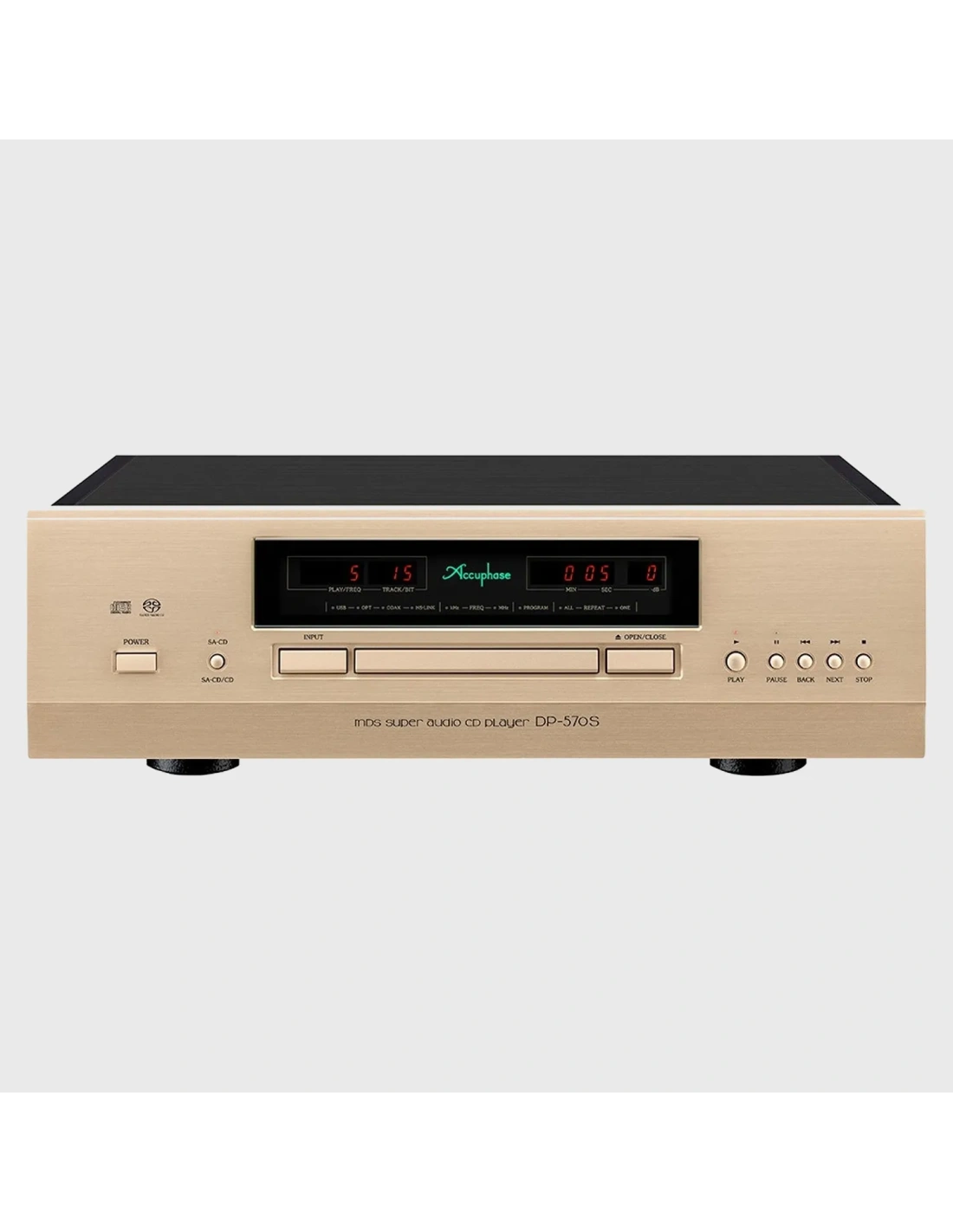 Trattandosi di un componente puramente audiophile, l'Accuphase DP-570S non integra internamente funzioni di streaming di rete (non è "Roon Ready" nativo senza PC/streamer esterno) né connettività Bluetooth/Wi-Fi. È una macchina dedicata alla massima qualità della sorgente; per lo streaming è necessario collegare un player di rete esterno agli ingressi digitali. Data la qualità costruttiva, il peso di circa 19 kg richiede un posizionamento su un rack stabile e livellato per garantire il corretto funzionamento delle sospensioni elastiche della meccanica.