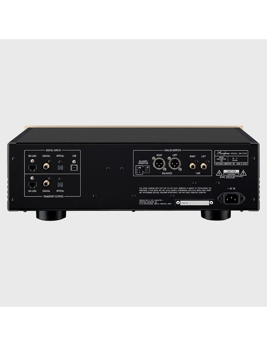 Il DP-570S offre una connettività completa per l'era moderna: ingressi HS-LINK Ver. 2, Coassiale, Ottico e USB-B. Dispone inoltre di uscite digitali (Coax/Opt/HS-LINK) per chi desiderasse utilizzare solo la meccanica con un DAC esterno come il DC-1000. Le uscite analogiche sono bilanciate XLR (con selettore di inversione fase) e RCA sbilanciate. È inoltre predisposto per l'inserimento in un loop di correzione acustica digitale tramite il processore DG-68, garantendo una flessibilità di sistema totale.