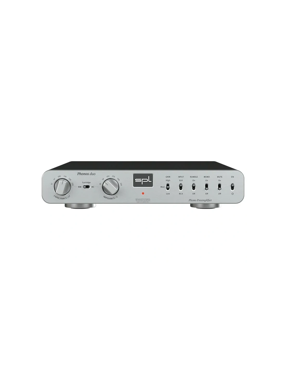 Il SPL Phonos duo è uno stadio phono MM/MC di altissima qualità progettato per gli audiofili più esigenti. Evoluzione del celebre SPL Phonos, il modello duo integra la rivoluzionaria tecnologia VOLTAiR a 120V e un'equalizzazione RIAA sviluppata secondo le specifiche di Douglas Self, garantendo una riproduzione sonora estremamente dettagliata, lineare e priva di rumore. Grazie alla doppia connettività bilanciata e sbilanciata, alla selezione precisa di impedenze e capacità, e a un guadagno regolabile fino a 70 dB, il Phonos duo si adatta perfettamente a qualsiasi testina MM o MC, offrendo un'esperienza d'ascolto su vinile senza compromessi.