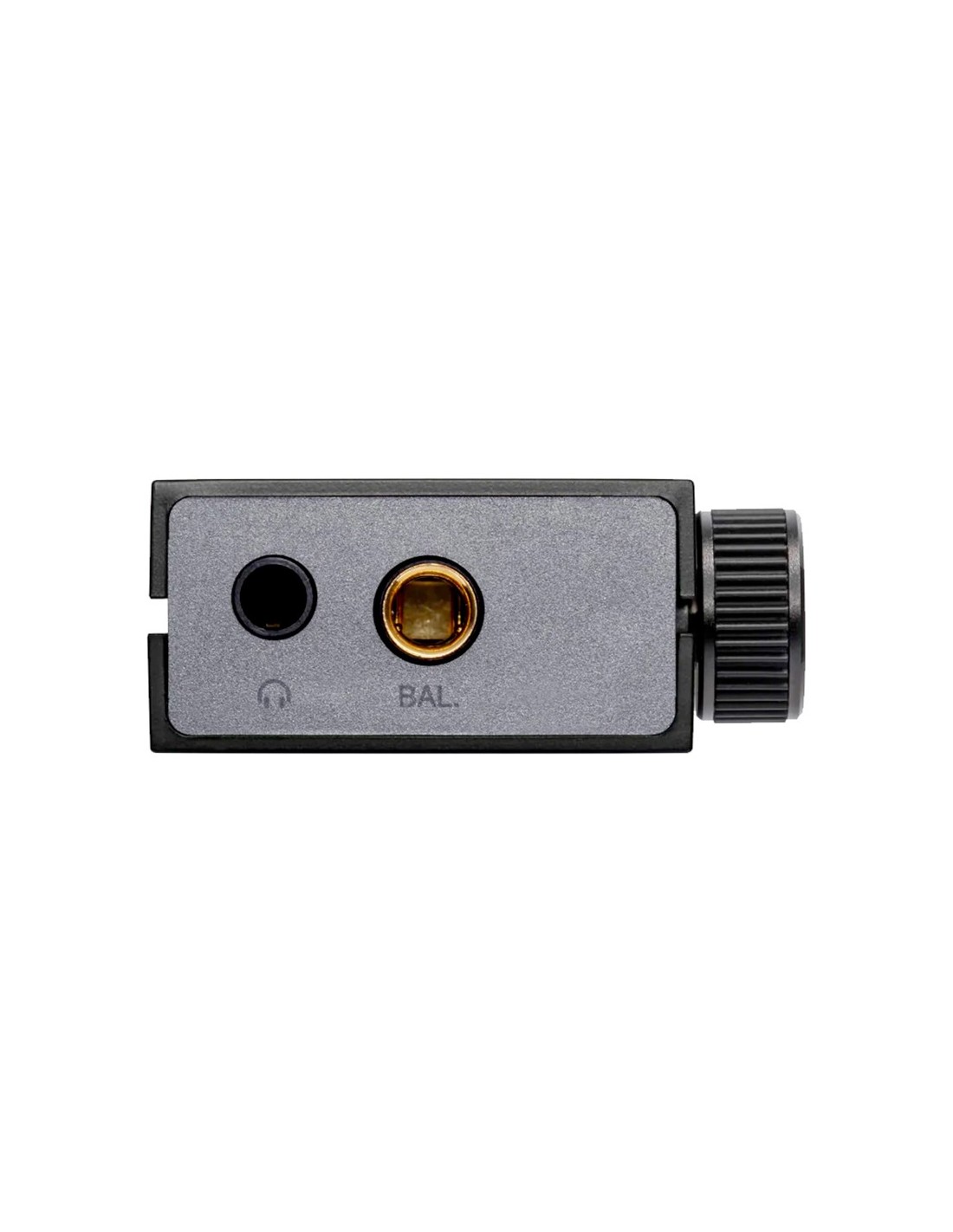 Amplificatore DAC portatile Bluetooth. Qualità Bluetooth 5.0, LDAC e AptX HD 24bit/96KHz. BT Multipoint. DAC Sabre ESS ES9281AC a 32bit/384KHz e DSD nativo a 256. Stadio di amplificazione con uscita 4V (bilanciata). MQA 8X. LED di indicazione funzione. Doppia uscita, sia analogica 3,5mm che bilanciata 4,4mm. Ingresso USB-C. Microfono incorporato. Batteria interna 600mAh 3,8V polimeri di Litio. Compatibile anche con dispositivi iOs. Cavi USB-C e Lightning in dotazione. Roon tested. Configurazione tramite App. Chassis in policarbonato nero opaco con manopola del volume in alluminio. Dimensioni (LxAxP): 33x68,4x16,5mm. Peso: 40gr.
