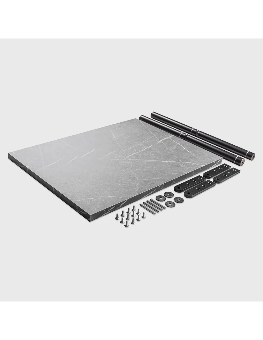 Contenuto del kit: 1 ripiano in HDF; 4 gambe portanti; 4 staffe in acciaio; 4 rondelle disaccoppianti