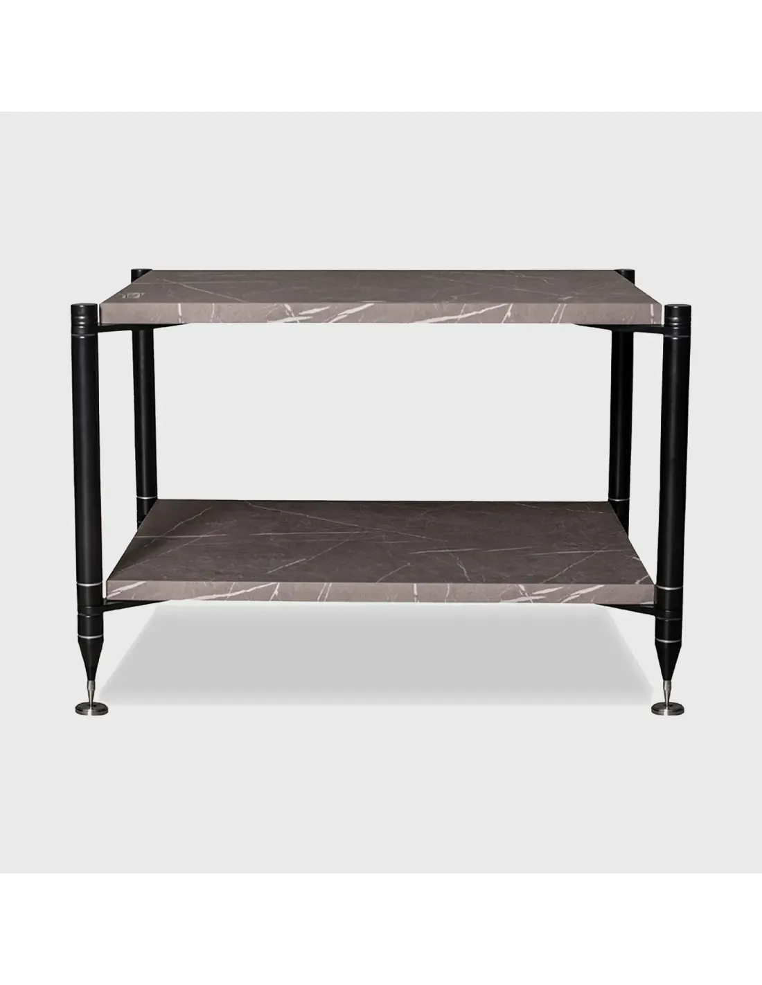 La robustezza è garantita da una struttura a 4 gambe in acciaio inossidabile solido tornito dal pieno, posizionata esternamente ai ripiani per massimizzare lo spazio utile. Il collegamento tra i ripiani e la struttura avviene tramite robuste staffe portanti in acciaio, assicurando una stabilità assoluta. Grazie al design modulare, il rack è facilmente espandibile aftermarket, permettendo di aggiungere ulteriori ripiani per seguire l'evoluzione del vostro sistema Hi-Fi senza dover sostituire l'intero supporto.