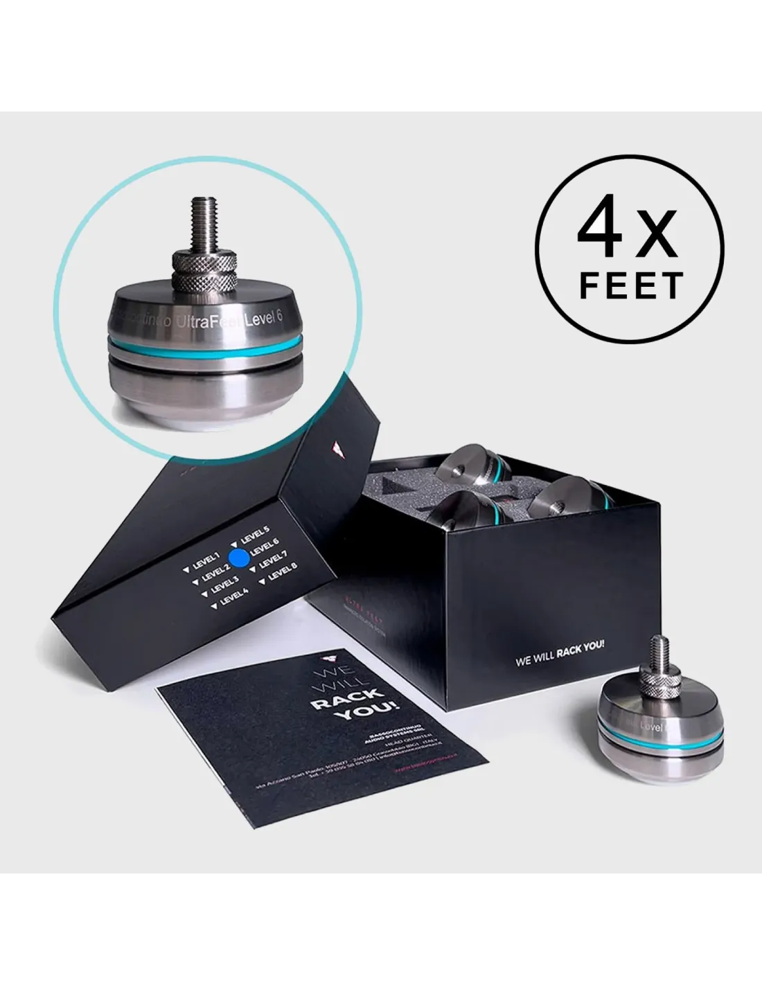 Gli Ultra Feet Level 6 sono stati specificamente strutturati per garantire le massime prestazioni con carichi dal peso complessivo compreso tra 20,4 e 100 Kg (da 5,1 a 25 Kg per piedino), rendendoli ideali per una vasta gamma di diffusori. Questo set di 4 piedini, fornito con adattatori di filettatura M6, M8 e M10, è l'investimento perfetto per chi desidera un miglioramento tangibile della qualità del suono, trasformando l'esperienza di ascolto in qualcosa di veramente straordinario.