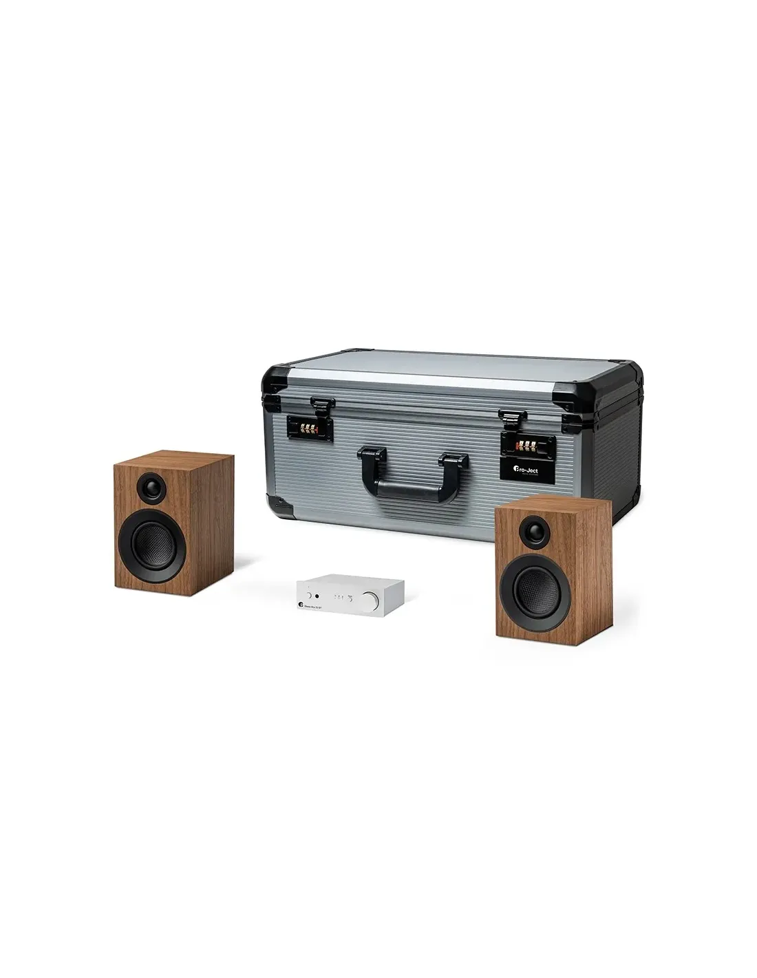 Il Pro-Ject Travel Set è un sistema HiFi compatto pensato per gli audiofili che desiderano portare con sè un suono di alta qualità ovunque vadano. Racchiuso in un elegante trolley in alluminio con rotelle, questo set da viaggio include un amplificatore integrato ultracompatto con Bluetooth aptX HD, una coppia di diffusori passivi da scaffale, cavi di collegamento in rame OFC e piedini smorzanti in TPE. Ideale per vacanze, trasferte o come impianto da seconda casa, il Travel Set garantisce una riproduzione musicale dettagliata, potente e sempre coinvolgente, sia in modalità wireless che tramite ingressi analogici.